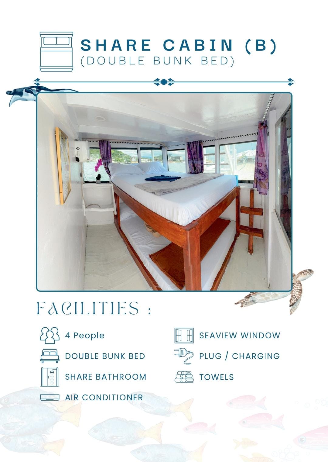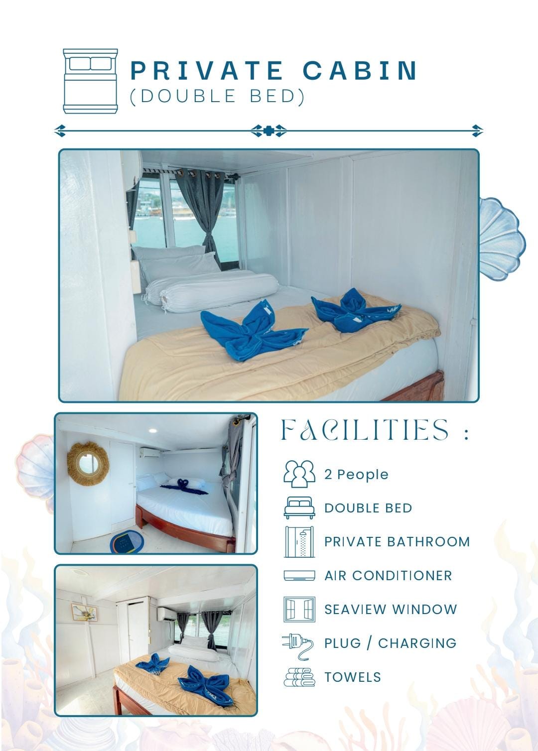 ✔ Private cabins with AC